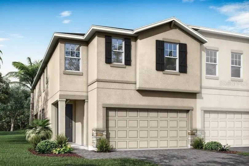 Under Construction. This 2,574 square foot home features 4 bedrooms, 3 baths, loft and game room, 2 car garage. The End Unit French Country elevation Venice is located in the very popular, Lutz/Wesley Chapel area. This plan welcomes you into a large foyer featuring high ceilings and plank tile flooring, which flows seamlessly throughout the main entertaining spaces. The open kitchen is complete with 42" Harbor painted cabinets, Calacatta Arno quartz counter tops, unique glass tile backsplash and stainless appliances (including the refrigerator). The cook of the home will enjoy this spacious, open kitchen, with large center island with a breakfast bar layout which makes it ideal for entertaining or meal prep. Just off the great room you'll find a screened and paver lanai connected by an 8' sliding glass door. This screened area is the perfect place to enjoy the view of the pond. Upstairs, the owners retreat, separate from the secondary bedrooms, offers a large walk-in closet, double vanities and our deluxe bath with large walk-in shower. Also, upstairs is a huge bonus room and loft area, perfecting for entertaining, studying or simply relaxing. The secondary bedrooms feature walk-in closets and share a large bathroom with a double sink vanity and shower/tub combo. The 4th bedroom is on the main floor and is adjacent to the 3rd full bath. This room is perfect to use as a guest suite or a home office. This home also features an oversized laundry room upstairs, and for added convenience you'll find a built-in stop & drop at the garage entry to keep life organized. All of our homes are wired with the latest in Smart Home Technology and boast many energy efficient features like double pane lo-E, vinyl windows. Volanti falls into the school district of Veterans Elementary, Cypress Creek Middle School and Cypress Creek High School. The location is less than 2 miles from Tampa Premium Outlet Mall, the Shoppes at Wiregrass and the Wesly Chapel Groves. Volanti is a gated community with a large, heated pool, BBQ area, and outdoor fire pit. No CDD Fees! The estimated completion of this home is NOV/DEC 2024. Photos, renderings and plans are for illustrative purposes only, and should never be relied upon and may vary from the actual home. The photos are from a furnished model home and not the home offered for sale.