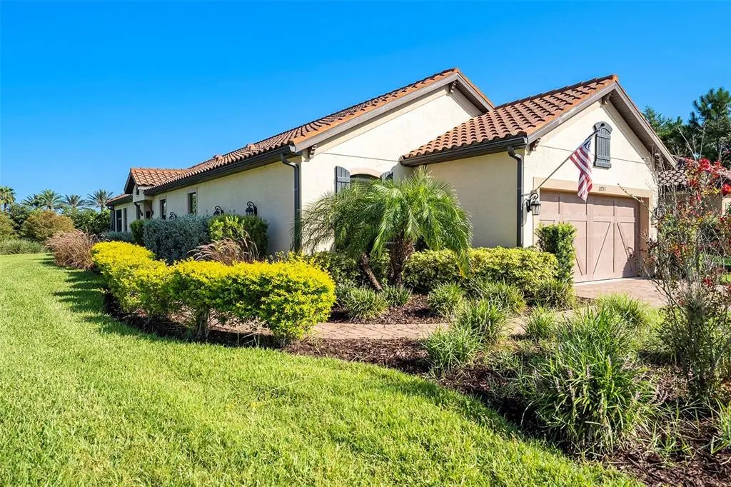 Welcome to beautiful Esplanade, a gated resort style community at Starkey Ranch. This fully updated 1,931 sq ft home sits on an extended lot with a gentle water view. Hosting 3 bedrooms and 2 full baths, this split floor plan includes many upgrades such as shiplap tray ceilings, crown molding throughout, built-in fireplace, upgraded countertops, quartz countertops in kitchen, silestone countertops in both bathrooms, board and batten walls and laundry room built-ins.The elongated driveway can comfortably fit multiple cars. This home's kitchen opens up to the vast living room perfect for enjoying the fireplace as you gaze onto the lanai and water view beyond. The kitchen is lined with stainless steel appliances featuring a closet pantry and double gas oven. Down the hall you are greeted into a large office with french doors, fitted with thoughtfully crafted board and batten walls. A dedicated laundry room is completed with a sink and built-ins to ease daily life. The primary suite gazes onto the water upon entering the bathroom with two vanity sinks, water closet, and large shower. The primary walk-in closet is home to a large closet system making organization easy. The quarterly HOA fee includes lawn maintenance, bushes and irrigation system. Community amenities include tennis and pickle ball courts, a 6000 sq ft. amenity center hosting a fitness center, spa and pools, dog park and playground. You will also enjoy the benefits of the Starkey Ranch community and enjoy Old Pasco as you traverse trails and lounge the pools and parks. HVAC and water heater are both 2018. Schedule your showing today and make this stunning home yours!