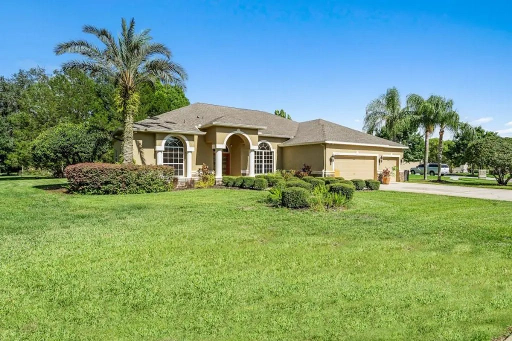 Located in a gated community, this stunning cul-de-sac home offers access to a private chain of lakes with a boat ramp, perfect for boating, water skiing, and fishing. Enjoy classy interiors with high wooden ceilings, and a spacious open layout. Features include a 3-car garage, new roof (2020), high-efficiency AC (2018), UV tinted windows, new appliances (2019), and new flooring (2020). Entertain in the billiards room, chef’s kitchen, and family room with custom stone accent wall. The master suite boasts a spa-like bath with waterfall showers. The expansive outdoor space has a screened patio, built-in kitchen/ island grill, split AC in garage and room for a pool. Don’t miss out—call us today.