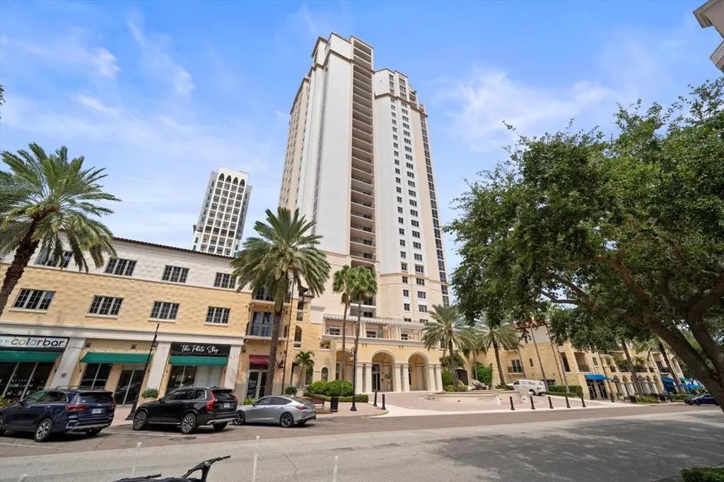 WATER VIEW! In the middle of downtown St. Petersburg. This unique, one-owner condo is SURROUNDED by luxury amenities with special attention to detail throughout. Designer Kitchen (recently remodeled) offers GAS cooktops, built-in ovens, high gloss cabinets, floating island, open breakfast bar, travertine tile and granite countertops that express a desire to live a beautiful lifestyle. The Powder Room creates a tranquil elegance which carries into the large bedrooms. Here, the guest bedroom (with ensuite) looks out to the vibrant city views and Florida sunsets. The stunning Master Bedroom area offers private space that includes 2 walk-in closets with built-in cabinets and shelves, soaking tub, walk-in shower with bench, a separate toilet area and double vanities. Enjoy incredible sunrise and sunset views. The living room has water and city views. Hardwood floors. From the porch, enter the Master Bedroom, Dining Room and Living Room. Laundry room with cabinets and sink. 2 Parking Spaces- One with electric vehicle charging station. On-site storage room. WALK TO WORLD CLASS MUSEUMS, RESTAURANTS AND MUSIC VENUES. THE VINOY HOTEL, SAINT PETERSBURG YACHT CLUB, AND MAHAFFEY THEATRE (HOME OF THE FLORIDA ORCHESTRA) ARE WITHIN BLOCKS OF THIS BEAUTIFUL HOME!!