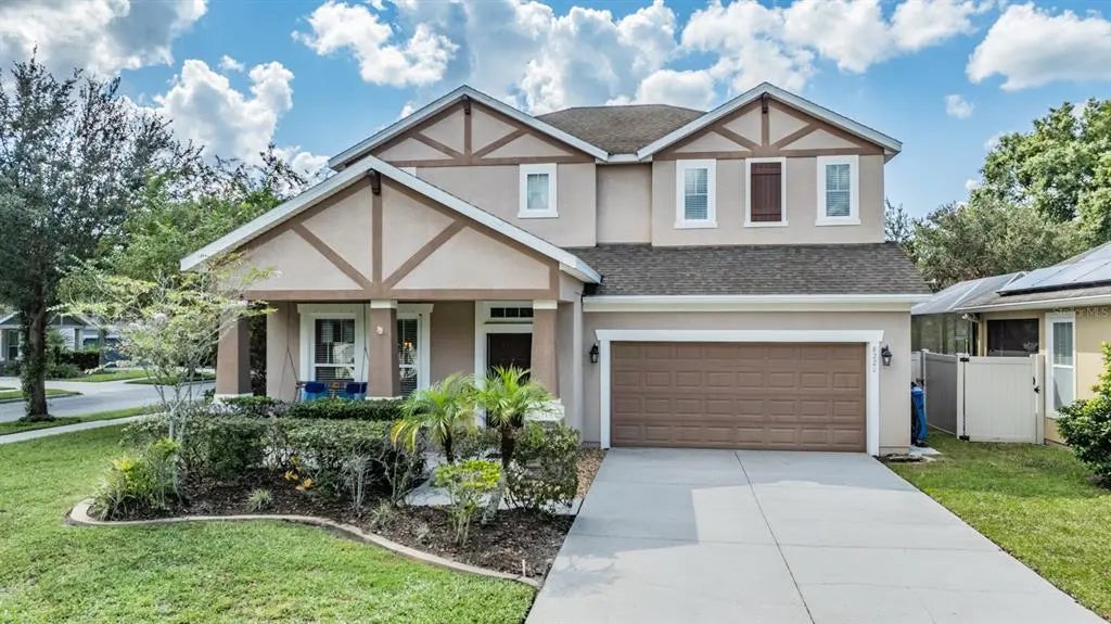 One or more photo(s) has been virtually staged. ASSUMABLE VA LOAN at a 2.25% interest rate for VA Approved Veteran!! Don’t Miss Out on this this stunning 4-bedroom, 3-bath Craftsman-style beauty, built by Ashton Woods in 2010, offers a cozy and elegant retreat in a hidden gem location in the Odessa area of Tampa, FL. Enjoy quick access to the Upper Tampa Bay Trail, Veterans Expressway, shops, restaurants, nearby beaches, and downtown Tampa. Top-rated schools and new charter schools are just minutes away. The spacious, open floor plan welcomes you with a grand entryway, leading past the formal dining room into a gourmet kitchen featuring 42" cabinets, a large center island, solid surface countertops, and stainless steel appliances. The kitchen overlooks the expansive great room, which boasts 8' triple sliders that open onto a screened lanai—perfect for indoor-outdoor living. With high ceilings, crown molding throughout, and designer touches, this home shows like a model. The first floor includes a private guest suite with a full bath, while tile and wood laminate flooring run throughout the home. Upstairs, The versatile loft, accented with a stone wall and full surround sound, makes for an ideal media or game room. Off the Loft you will find the luxurious master suite with impressive double trey ceilings and a spa-like bath. Step out to the large screen enclosed lanai for fresh air…Outside, enjoy the peaceful, low-maintenance backyard, complete with mature landscaping, swing set, a wooden deck, and a former pool/fish pond that could be converted to a garden. The organized garage includes a bike rack, work bench, shelving, a water softener, and even a hot/cold outdoor shower. The 85-foot-long driveway offers plenty of parking and space to play while situated on a corner lot. Just head out this small community and hop on the Upper Tampa Bay Trail that extends to the Peterson Road Park for basketball, a picnic and play on the playground. The Upper Tampa Bay Trail is 7.25 miles and is great for walking, running and roller blading and enjoying the Florida weather. Built in 2010, Roof is 14 (Sellers will consider putting on a new roof with a good offer) and AC is 4 years old. Brand New Water Heater and Rainbird automated sprinkler system. This home is just perfect...It is situated in a great school district, this quiet, friendly neighborhood has no CDD fees and a low HOA...Come make it your very own! This home is ready for you to move in and enjoy today! This Lovely home did not have any damage from Hurricane Helene and no damage from Hurricane Milton!