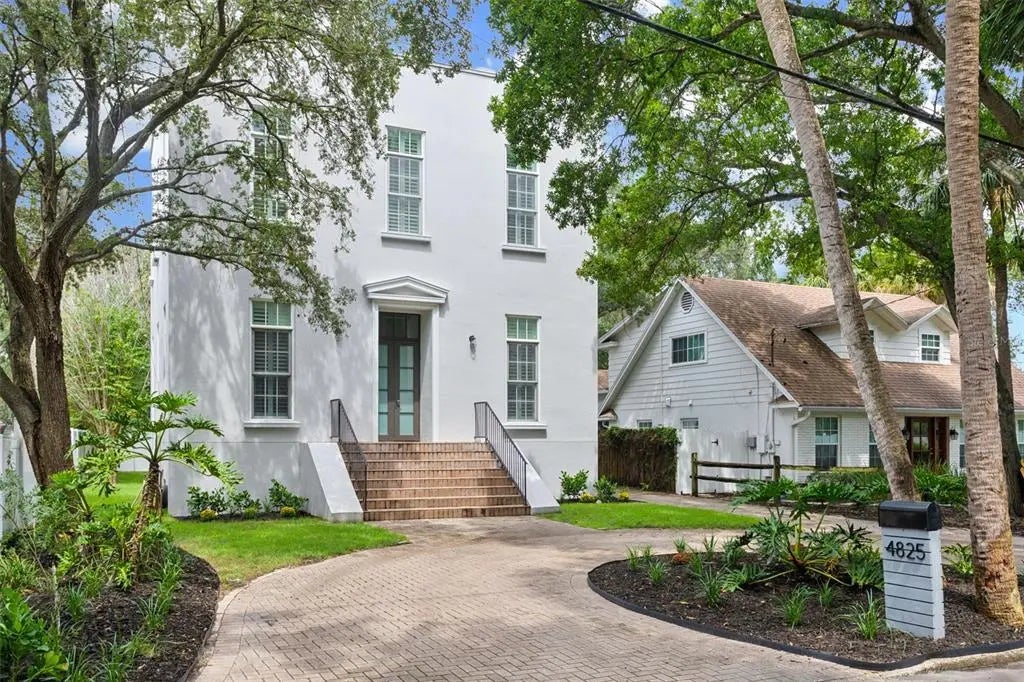 HOUSE DID NOT FLOOD DURING HELENE! Uniquely elaborate two story ELEVATED block home situated on a quiet cul-de-sac in the desirable greater Sunset Park neighborhood! The front of the property features a brick paved circular drive that leads to a wide set of steps to the front door. Inside is an impressive great room with soaring 11’8 ceilings and gleaming solid oak hardwood floors. This great room provides plenty of room for a large living room set and would easily fit a dining table for 10 persons. Custom wood shelving flanks the entry into the kitchen. The kitchen itself was completely remodeled in 2018 featuring modern espresso-colored cabinets with 42” uppers, quartz countertops with white subway backsplash, stainless appliances including a glass cooktop and built-in oven. There is also a ground floor guest suite that has matching wood shelving surrounding the doorway with a basin sink and shower in the bathroom. The solid oak flooring continues up the stairs and throughout second floor hallway and bedrooms. The second floor also has high 11’ ceilings. The primary suite has dual walk-in closets, and a jetted tub with separate shower made with Spanish marble. There are also two guest bedrooms that share a bathroom with oversized tub/shower combo. The laundry room is also upstairs and has upper and lower cabinetry. The back yard has a detached garage with two storage closets, lush landscaping, and a brick paved patio. Other features include: long brick paved driveway capable of holding up to seven cars; exceptionally tall windows throughout providing generous amounts of natural light; closet system in all closets; solid core 8’ doors; plantation shutters throughout; under the stair storage; LED canned lights in great room; dual A/C system (2017, 2020); roof 2018; water heater 2022 (please refer to improvements list attached to MLS for full details). Natural gas is also available from the street. This neighborhood is conveniently located minutes from shopping malls, restaurants/entertainment, the Tampa International Airport, I-275, Marina Pointe & Gandy Bridge, downtown Tampa, and everything South Tampa has to offer!