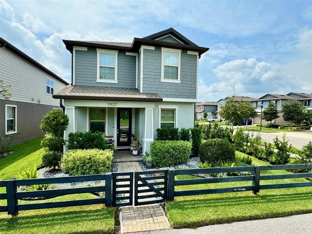 Just beautiful is this two story home in the desirable Starkey Ranch location. Everything has been upgraded and very tastefully selected from top to bottom, from inside to outside. No hassle looking for parking for your visitors, the long paved driveway allows several cars to park. Upon entering the home an open space welcomes you, big enough to have your dream furniture and the enjoyment of the very modern fireplace. All flooring is finished with a unique porcelain tile that gives a warm and elegant look. The open kitchen with the fabulous and unique backsplash has stainless steel appliances, upgraded gas stove, lower profile refrigerator and quartz counter tops and a generous walk-in pantry. There is also a powder room with a beautiful light fixture and pedestal sink on this level. On the second floor is the master suite , the two secondary bedrooms, the second bathroom and the laundry. The big and luxurious master suite has a look like wood porcelain floor tile, delicate wall paper and light fixture that blends with the ones at the master bath. The master bathroom has an upgraded tile, cabinets, light fixtures, paint and frameless shower enclosure. A big walk-in closet complements this owners suite. Two more bedrooms are located in the second floor sharing the second bathroom that has been upgraded as well. The Laundry closet is conveniently located in the second floor. The house has a water filtration system, water softener and camera security system installed. The house is in move in ready condition. The community features many trails and parks for the entertaining of all family ages, tennis courts, baseball fields and much more.