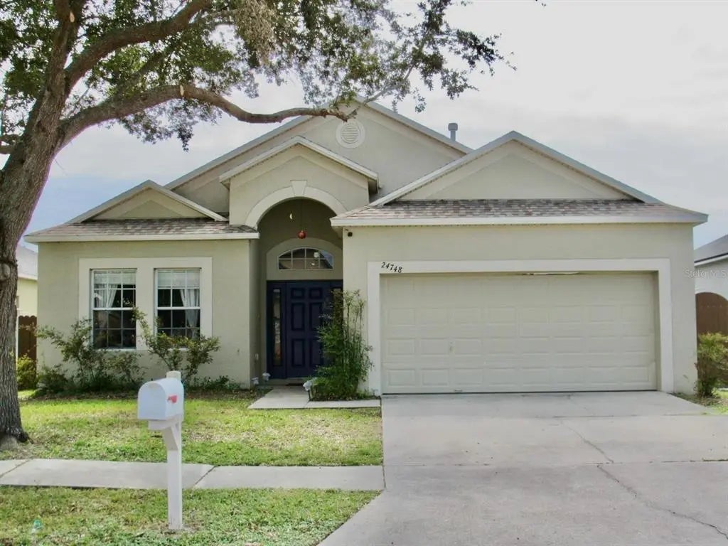 This may be your dream home, enjoy this spacious 3 bedroom/2 bath home with 2 car garage. This home will captivate you from its entrance, you will notice its high ceilings, modern paint in neutral tones, laminate flooring, private kitchen that features a pass-through bar to the separate dining room. Your spacious master bedroom will be your retreat with an inviting walk-in closet and a large bathroom that features a double vanity, large soaking tub, and separate shower with a door to the lanai. The secondary bedrooms are spacious and separated by the guest bathroom and all located just off a quiet hallway. The laundry room will provide you with a private area and storage space. Relax in the Backyard and have special moments with your family. Minutes from I-75 and close to restaurants and shopping, with Costco and Tampa Outlets within 5 minutes! Make your Appointment NOW.