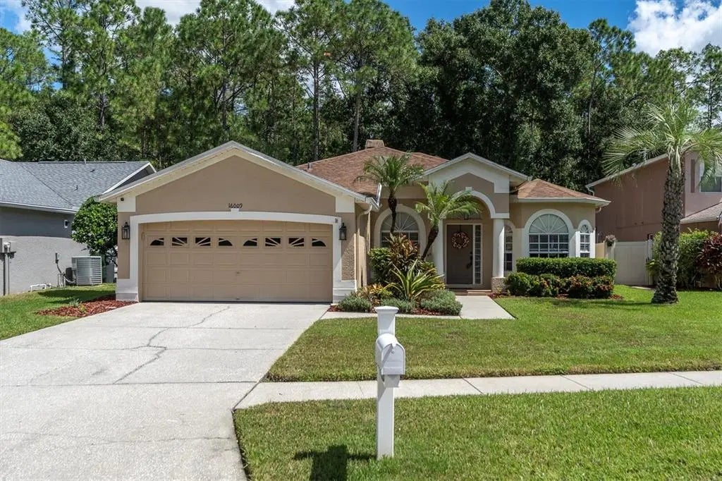 Nestled on the peaceful cul-de-sac of Royal Aberdeen, this stunning 4-bedroom, 2-bath Eagles Conservation Pool Home offers a tranquil retreat. Upon entry, you're greeted by an open layout featuring brushed wood flooring and a formal dining area alongside a spacious sitting area. The heart of the home is the gourmet custom kitchen, designed to impress with an oversized island, under-mount double sink, granite countertops, double ovens, ample cabinetry, and a custom tile backsplash. Equipped with stainless steel appliances, including a refrigerator, microwave, range hood, and cooktop, it’s perfect for aspiring chefs. The cozy living room is anchored by a wood-burning fireplace for those cooler Florida winter months. The large master bedroom offers a serene retreat with a newly updated en-suite bathroom, while three additional guest bedrooms provide plenty of space for family and guests. The secondary guest bathroom is equally well-appointed. Step outside to your private pool oasis, complete with a lanai-covered pool area set on travertine tile, overlooking serene conservation views. Additional upgrades include a brand new HVAC system with UV light (2024), new carpet in the guest bedroom, a new pool pump (2020), sealed pavers (2024), a new rod iron fence (2021), new fans, fixtures, dining room lighting, a new sprinkler Rainbird control panel (2024), a new garage door opener (2021) and garage door springs replaced (2023). The Eagles is an exclusive, 24hr man gated community in Odessa featuring two Golf Courses, a Clubhouse, Restaurant, Tennis Courts, Basketball Court, Playground, Walking Trails, and more! Schedule your showing to see this exquisite home in this beautiful neighborhood now! This home is an absolute must-see!