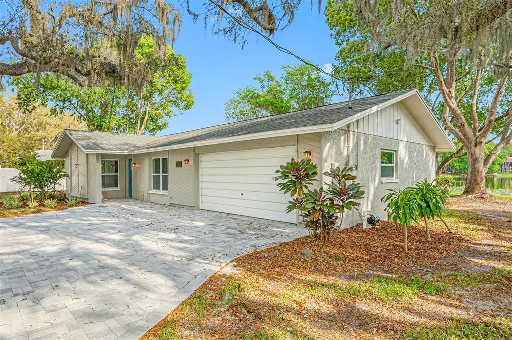 Escape to serene waterfront living in this updated 3 bed, 3 bath home with a 2-car garage, situated on an oversized lot in the Keystone community of Odessa. The kitchen has been upgraded with granite countertops, new cabinets, and appliances, while new vinyl plank flooring and carpet flow throughout. All bathrooms feature stylish new vanities and fixtures, with fresh paint inside and out. The home boasts two primary bedrooms, each with an en-suite bath, and one with a walk-in closet. Enjoy peaceful lake views from the larger primary bedroom’s sliding glass doors or unwind on the covered patio. The oversized garage provides ample space for storage or a workshop, and the new paver driveway, patios and HVAC add peace of mind. Located in a NON-FLOOD ZONE near Brooker Creek Preserve, this home offers a peaceful retreat with easy access to Tampa’s amenities and no HOA restrictions. Hurry and schedule your appointment today! This home is available for the first 3 days to Active-Duty Military, Veterans, Widows of Veterans Educators & First Responders. See the attachment for more information on our Special Give Back Program and how to qualify.