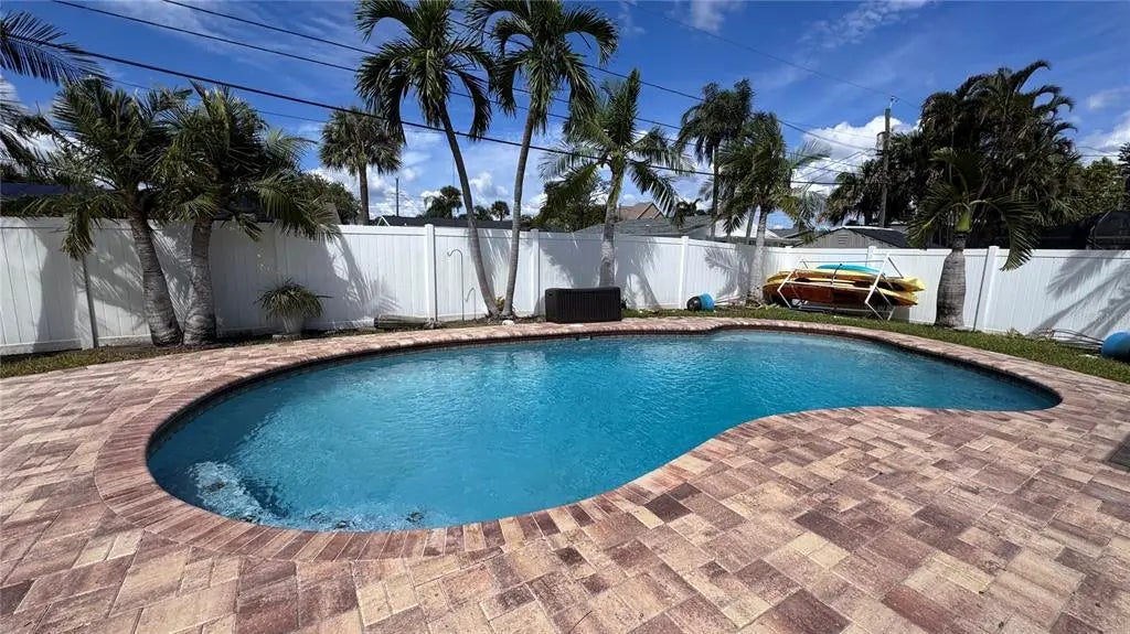 **THIS PROPERTY HAS DAMAGE FROM HURRICANE HELENE** SOME PHOTOS ARE FROM PRE-HURRICANE. Come make this your own custom, pool home! This residence boasts superior block construction surrounded by million-dollar waterfront properties. Highest elevated home on the same side of the street. This light-filled haven features two bedrooms, two baths, and an oversized two-car garage. Step inside to discover a newly designed open-concept living space, perfect for hosting gatherings with loved ones. Two bedrooms overlook the sparkling pool, offering serene views and ample comfort. Outside, the shimmering pool invites you to indulge in the tropical breezes or take a refreshing dip in the pristine pool. Fully fenced in yard with vinyl privacy fence. With a prime location near parks, beaches, dining, and entertainment, including downtown St. Petersburg's vibrant scene.