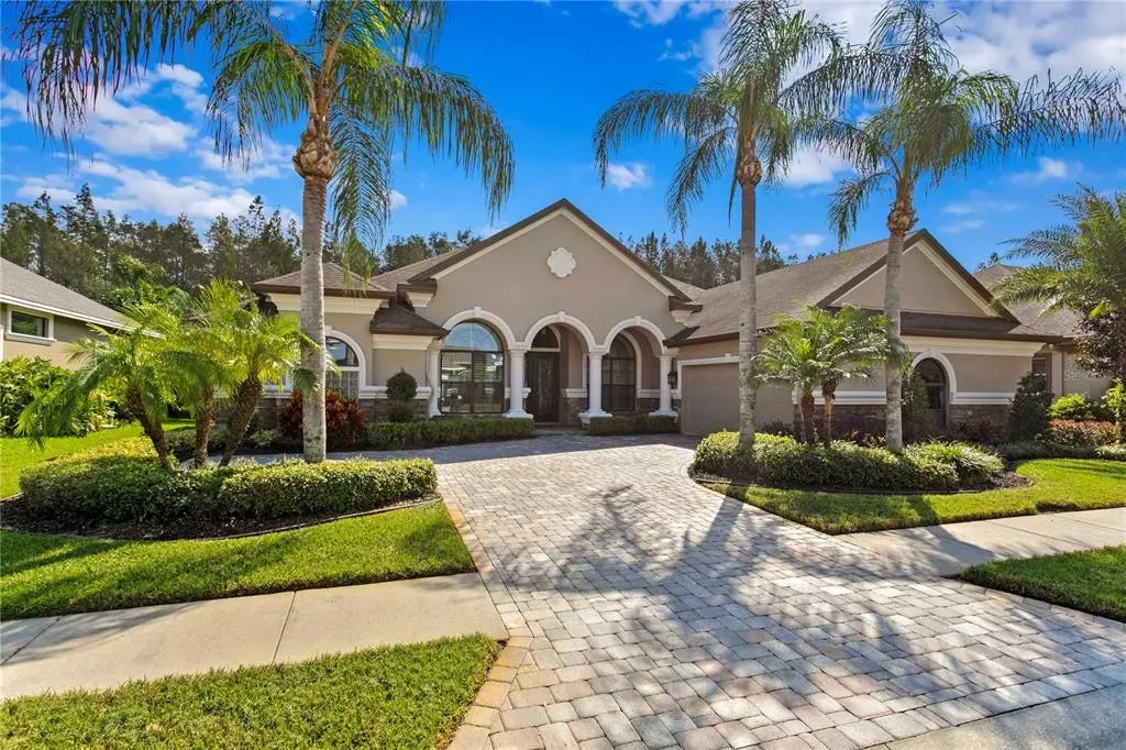 Welcome home to this exquisitely remodeled custom-built Samuelson home in coveted Grey Hawk at Lake Polo. Situated on a lovely conservation lot, this one-story executive pool home features plenty of space with four bedrooms, plus office, plus den. Walk up the paver drive to your elegant entry way, and step into a foyer with soaring ceiling heights, wood floors, and views through the formal living room to the pool and conservation view. Flanked by a private office and the dining room, this is an impressive space to greet your guests. The spacious family room and kitchen area is the heart of the home, with a gorgeous custom kitchen with tons of cabinetry, gorgeous quartz countertops and backsplash, designer-perfect hardware and tile choices, and a huge walk-in pantry. The bedrooms are comfortably sized, with high-end bathrooms with custom tile work. Your primary suite features dual walk-in closets, and a gorgeous spa-bath. Al fresco entertaining is a breeze with pocketing sliders to the screened rear lanai and pool area. The pool with heated spa is perfect to cool off on a hot day, or soak your tired joins at the end of the work week. This remodel was completed two years ago; HVAC units are 5 years old; doors and windows are impact rated. Hurry and make this designer-perfect home yours!