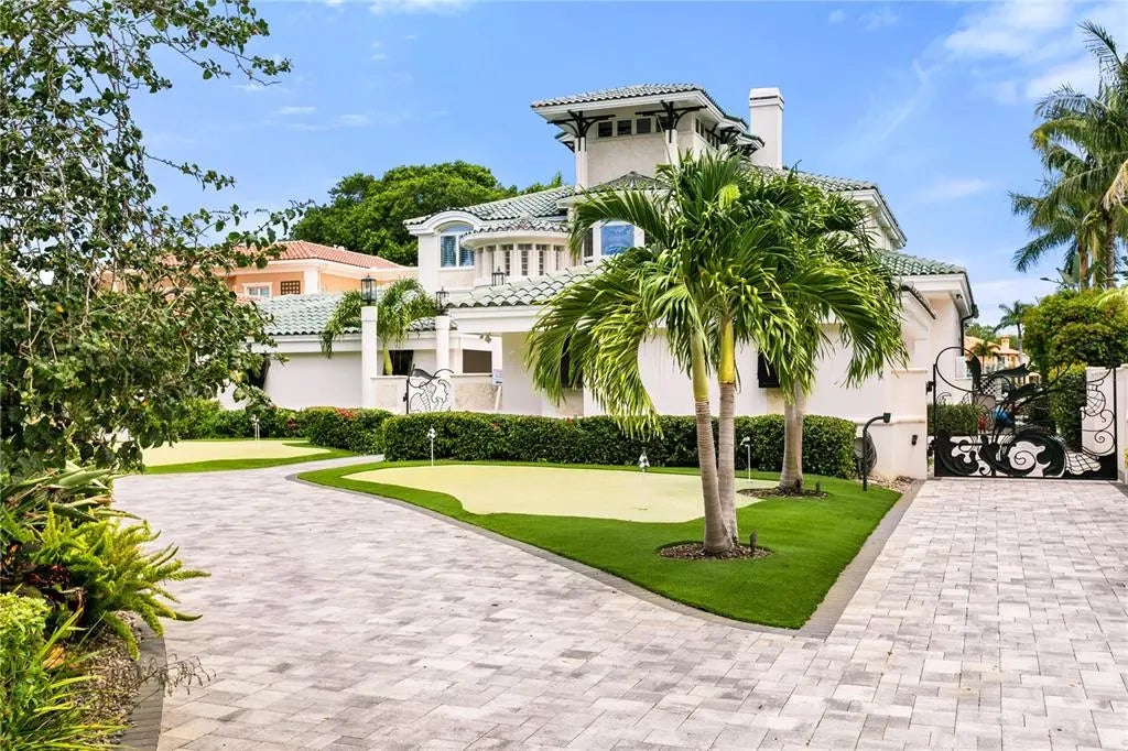 No flooding. Ready for immediate occupancy. New furnishings new from Restoration Hardware, Arhaus, and Timothy Oulton. Welcome to this exquisite estate on Coffee Pot Riviera, a half-acre lot on a protected inlet of Tampa Bay. Right away you are drawn to the vine-inspired wrought iron gates making a striking first impression to the property's entrance. The overall style of the home pulls together unique architecture elements of organic, nature-inspired design. A jaw dropping grand entrance blends a functional structure requirement with a creative artistic design of columns that resemble the natural form and texture of trees allowing this three-story open living space to seamlessly integrate with the waterfront landscape. The tongue-and-groove ceiling of this space is reminiscent of a boat's hull, which enhances the spacious, open airy feel of the home, like the feeling of being on a luxury yacht. Bringing this all together, creates a magnificent three-story wall of windows flooding the house with natural light, offering views of the water and creating a seamless connection between the indoor and outdoor spaces. It’s simply stunning! Next you are drawn to the expansive outdoor area which was carefully designed to provide much-needed shade and comfortable, covered living space that connects beautifully to the extra large backyard, large infinity pool and waterfront. A grandfathered boat house offers a rare and valuable feature to protect your watercraft. Everything has been updated and enhanced by the current owners with the addition of new flooring throughout, updated bathrooms and kitchen. An added bonus is the primary bedroom being on the first floor as well as another bonus room that could be used as a bedroom with a full bath, media room or office. The other guest bedrooms are all on the second floor. A four car garage (two have been converted to a gym) gives you the flexibility for extra cars or a workout space. This sophisticated design combined with Florida's tropical landscape will give you a luxurious yet comfortable living experience in the heart of fabulous St Pete!
