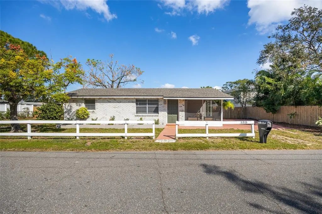 Welcome to this charming 2-bedroom, 1-bathroom block home in the heart of Ballast Point! As you step inside, natural light fills the inviting living room, leading to a functional kitchen equipped with a range, range hood, full-size refrigerator, and a cozy eat-in kitchen area. Sliding glass doors off the kitchen open to the backyard. Both bedrooms feature built-in closets and share a bathroom with a tub-shower combo. Outside, enjoy a fully screened-in patio, perfect for relaxing or entertaining, with easy access to the separate laundry room. This delightful home combines comfort and practicality in a prime location! This home was NOT affected by the recent storms.