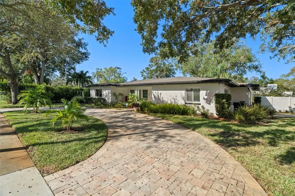 BELLEAIR ESTATES where home is central to two amazing Golf Courses, The Belleair Country Club, and the Pelican Golf Club which is host to the Annika Pro -Am. This home is tucked quietly between the two. The heart of Belleair! Two blocks away you can stroll along the Intercoastal Waterway with lovely walking trails and dog friendly parks. The tree lined streets lead to iconic Ponce De Leon Blvd., where holidays bring the neighborhood to life. The home sits on a large corner lot. It has been fully remodeled with a nouveau flair bringing the mid-century home into the modern era. Complete with Smart Home technology to manage heat, air, alarm system, and all appliances. Fiber Optic cable/internet with underground cabling ensures efficient connectivity. The modern kitchen is a connoisseurs dream with a layout made for entertaining. Even the lighting was thoughtfully created. Cabinets are custom made along with Cambria Quartz counter tops. A Chef’s faucet completes the creation. Appliances include Bosch Refrigerator and Silent Dishwasher, LG Range, LG Washer and Dryer. A new “whole house” HALO water filtration system was added to ensure that the water was free of pollutants. The split floorplan includes 3 bedrooms and 2 bathrooms. The Master Bedroom features 2 California Closets. The Master Bath includes a walk-in shower and a Jacuzzi soaking tub. There is a large laundry room. The family room features French doors leading to the Screened in Pool. All new lighting throughout the home along with new ceiling fans, new windows and new flooring. The Custom Plantation Shutters throughout was the finishing touch to compliment the updated doors and trim work. The outdoors includes a brick paved circular driveway and a separate driveway leading to the two-car garage. There is plenty of guest parking, along with the corner street parking. The entire property is nicely landscaped and fenced. Front and Back yards have a sprinkler system with water coming from an underground well used for irrigation. The pool filter system was just replaced. The Roof, AC System, Air Handler, and Water Heater are 3 years new. NOTHING LEFT TO DO BUT MOVE IN!