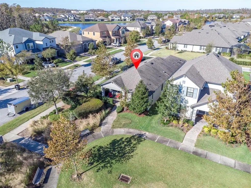 THE SEARCH ENDS HERE! A quaint & cozy home awaits, nestled in the heart of Tampa Bay’s #1 Master Planned community, Starkey Ranch. Meticulously maintained MI Homes Avalon spans 1765 sqft offering 3 bedrooms, 2 bathrooms, plus office/flex space and a charming 2 car rear alley garage with a lanai and sizable fenced yard. One of the seller’s favorite aspects of the home is the common green space in front of the home, perfect for talking with neighbors, having a game of catch or walking your furry friend. An inviting front porch beckons you to sit and enjoy an afternoon tea overlooking the green space. Once you enter through the shaded glass inlay front door, you are greeted by a warm and welcoming ambiance including warm wood-look tile flooring, wood-framed window boxes & Sherwin Williams Perfect Greige paint flows seamlessly through the foyer, office kitchen, dining room, living room & office. To the left, a flex room offers a versatile space for a home office, formal dining room or reading nook with ample natural light. To the right, two generously sized bedrooms share a convenient full bathroom with tub/shower combo. As you enter the main living area you are greeted by an inviting atmosphere for gatherings and entertaining. The open-concept layout seamlessly connects the living, dining, and kitchen areas, creating an ideal space for easy & practical living. The upgraded kitchen features attractive granite countertops, premium grey shaker wood cabinets with pull outs & sleek brushed nickel hardware. Stainless steel GE appliances including a gas range, microwave, dishwasher, and refrigerator are included. A spacious island provides ample seating for casual dining highlighted by 2 pendent lights and attractive gooseneck faucet, while a pantry provides abundant storage. The adjacent dining area, complimented by a chandelier, offers a perfect spot for family gatherings or hosting dinner parties. The family room features large windows that flood the space with sunlight. Retreat to the spacious primary bedroom, featuring multiple windows for ample natural light & ceiling fan. You will find a luxurious ensuite bathroom with a tiled walk-in shower, dual vanities with granite countertops and a spacious walk-in closet provides plenty of storage. Conveniently located beyond the family room, the laundry room includes a washer, dryer, utility sink, and shelving. A glass door leads to covered lanai, creating an ideal outdoor retreat for enjoying morning coffee or evening cocktails. Since this home sits on a corner lot, the fully fenced side yard is large and also offers hedges for privacy. A two-car rear-facing garage provides ample storage, while a long paver driveway leads to a quiet back alley. Convenient street parking is available for guests on the side of the home. Additional features include: washer, gas dryer, cabinets & utility sink in laundry room, gas tankless hot water heater, garage storage racks and a water softener. Located within the award-winning Starkey Ranch community, this home offers easy access to K-8 Magnet School, community amenities like walking trails, 3 pools, parks and playgrounds, shopping, Publix, dining, beaches, and a convenient commute to Tampa Airport. Make your move today: THIS IS HOME!