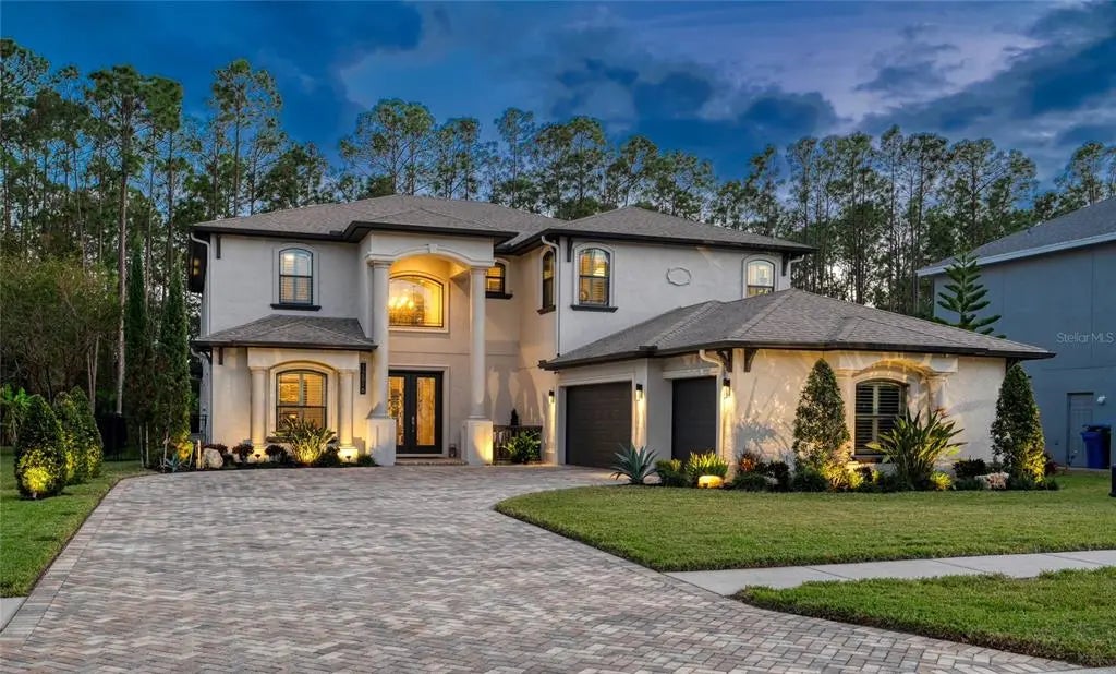 BETTER THAN NEW! MUST SEE! SHOWS LIKE A MODEL! Experience timeless elegance and estate-like luxury in this masterpiece, crafted by renowned local builder Larson in 2016. Nestled on a serene 0.3-acre wooded lot with conservation views and no rear neighbors, this home is situated in the sought after guard-gated Eagles golf community. Offering unmatched privacy and stunning curb appeal, the expansive paver driveway accommodates up to 7 cars and leads to an oversized 4.5-car side-entry garage. With the exterior freshly painted in 2024 and the home elevated at 23 feet above sea level, no flood insurance is required.