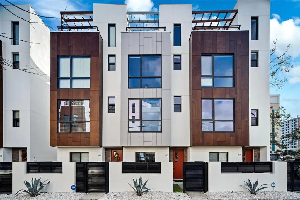 Step inside, and you’ll immediately notice the high-end finishes throughout. The first floor features a spacious private bedroom with an en-suite full bath—a perfect setup for guests or family. You’ll also find access to your oversized garage, complete with plenty of space for bikes and storage. The main floor is designed for entertaining, with an open floor plan that flows seamlessly from the cozy living room to the beautiful kitchen and inviting dining area. High ceilings and engineered hardwood floors add to the elegance. The kitchen is a dream, featuring 42” real wood cabinets, stunning granite countertops, a GAS range, stainless steel appliances, and a reverse osmosis water filtration system. Large impact windows flood the space with natural light, and custom solar shades for privacy when needed. A convenient half bath is also on this level. The primary suite on the third floor is bright and spacious, with an oversized closet and a luxurious en-suite bath that includes a double vanity and a glass-enclosed shower with floor-to-ceiling tile. Across the hall, the loft area is perfect for a home office, den, or extra living space. The laundry closet is thoughtfully located on this floor for easy access. And now for the showstopper—the rooftop terrace!?? Step outside and take in the stunning east-facing views of vibrant downtown St. Pete under your cedar wood pergola. This space is perfect for entertaining or unwinding after a long day. It even includes a natural gas connection for your grill and a custom wet bar with a beverage refrigerator, conveniently located just inside the new hurricane-rated doors. With tons of storage throughout and an unbeatable location near the Edge District, craft breweries, restaurants, museums, Beach Drive, Vinoy Park, and the Pier, this home truly has it all. Schedule your private showing today—you won’t want to miss it!