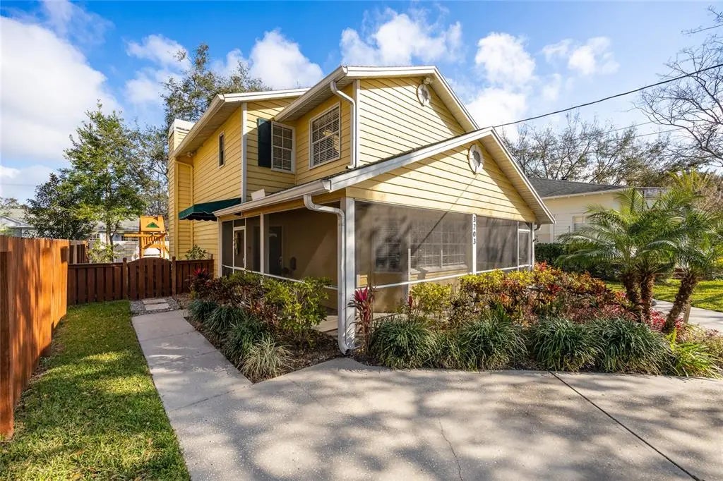 Welcome to this charming Palma Ceia bungalow, perfectly situated on a tree-canopied street paved with historic bricks - located within the coveted Plant High School District & not in a flood zone! As you approach, mature trees and lush landscaping enhance the home's inviting curb appeal, while a screened-in, wraparound porch welcomes you - perfect for enjoying peaceful mornings or relaxing evenings. Step inside to a spacious dining room featuring built-in cabinetry and a cozy window bench, seamlessly connecting to the open-concept kitchen and living areas. The kitchen offers stainless steel appliances, granite countertops, ample storage, and a breakfast bar. The inviting living room boasts a cozy fireplace and abundant natural light from the adjacent Florida room. The sun-filled Florida room, complete with surrounding windows & skylights, offers endless possibilities - whether as a playroom, home office, gym, or additional living space. A convenient half bath is also located on the main floor. Upstairs, the primary suite features an en-suite bathroom and walk-in closet, while two additional bedrooms share a well-designed full bath. The outdoor space is a private oasis, featuring lush landscaping, custom lighting, and a fully fenced backyard. Thoughtful upgrades include a NEW ROOF (2022), HVAC with UV light (2019), tankless water heater (2018), and brand new outdoor playset (2024). Designed for worry-free living, the home features a whole-house gas generator (2022), surge protection, and a mosquito control system. Additional enhancements include a Ring doorbell, motion sensor security lights, termite-resistant attic insulation, and an auto-circulated vented attic. Located just minutes from Palma Ceia Country Club, top-rated schools, shopping, dining, and everything South Tampa has to offer, this home is a true gem!