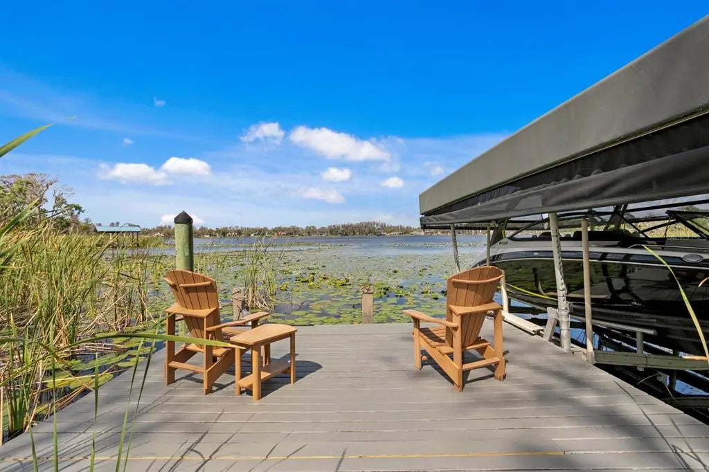 Discover the rare opportunity to own a breathtaking, nature-filled estate in the highly coveted, guard-gated community of Crystal Lake Manors. This exceptional property spans nearly 4 acres and offers the perfect balance of seclusion, luxury, and outdoor living. With 100 feet of pristine waterfront on the 80-acre skiable Cooper Lake, this home provides a truly unique retreat. Follow the freshly painted boardwalk through your private nature preserve, leading you to a dock with a 2020 hydraulic boat lift. Whether you’re into skiing, fishing, or simply soaking in the unparalleled sunset views, this location offers an idyllic sanctuary with major privacy. The spacious 4-bedroom, 2.5-bath home (2,850 sq. ft.) is designed for both relaxation and entertaining. Enjoy seamless indoor-outdoor living with pocket sliding glass doors that open to an oversized pool, expansive lanai, and tropical landscaping—ideal for hosting family and friends. The outdoor space also features a wet bar, pool bath, and outdoor shower for ultimate convenience. For those seeking even more space, a 561 sq. ft. air-conditioned flex building (remodeled 2020-21) awaits, offering endless possibilities as a studio, office, gym, or guest retreat. Inside, the gourmet chef’s kitchen will inspire your culinary creativity with over 40 custom maple cabinets, stone countertops, stainless steel appliances, and a center prep island. The spacious family room and breakfast nook overlook the serene surroundings, while the formal dining room showcases elegant crown molding and views of the private courtyard. This home also boasts modern updates, including 16 Simonton “storm breaker” hurricane impact windows (2022) and a Generac water-cooled whole-house generator (2020), ensuring peace of mind and energy efficiency. As part of Crystal Lake Manors, you’ll have access to fantastic community amenities, including tennis and pickleball courts, a playground, and a covered picnic area, all just steps away. Located at the end of a cul-de-sac, this property offers both exclusivity and convenience, with easy access to everything you need. Don’t miss out on this once-in-a-lifetime opportunity to own a piece of paradise in one of Lutz’s most sought-after communities. Schedule your private tour today and experience a lifestyle that blends luxury, nature, and recreation in perfect harmony. The HOME ITSELF is on nearly an acre and NOT in a FLOOD ZONE - FLOOD INSURANCE IS NOT REQUIRED FOR THIS HOME! - This property was high and dry during the recent storms!