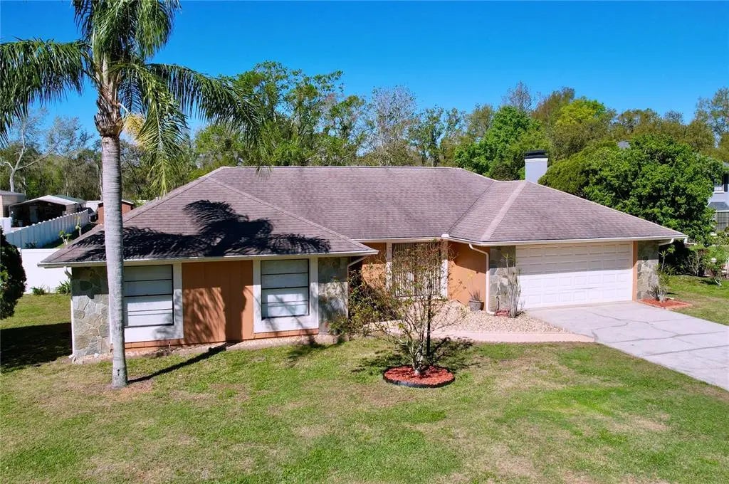 LOT OF LAND!!! If you've been looking for a 4 Bedroom Home with a LARGE BACKYARD and a BIG SWIMMING POOL, you'll definitely want to see this one. This home is located on a 3/4 Acre Lot near the heart of Lutz and has no formal HOA or costly CDD Fees. Serene & Peaceful Setting. Measuring in at just under 2000 sq. ft. of living space this home has a Split Bedroom Plan providing privacy for the Primary Wing. The Formal Living & Dining Rooms have easy care tile and create a large space for entertaining. The Spacious Family Room is located off of the Kitchen and has a cozy wood burning fireplace with built in bookshelves on each side and sliding glass doors leading out to the expansive covered patio. The Kitchen has a convenient breakfast serving bar and the updated cabinetry has sleek stone counter tops. The Primary Bedroom has a walk-in closet and Bath with jetted tub and separate shower. The additional bedrooms have wood flooring & share a hall bath. Interior Laundry Room and a Large Garage. Plenty of room for multiple cars to park on the driveway. Well and Septic Systems. There is a shed out back that will remain as-is.