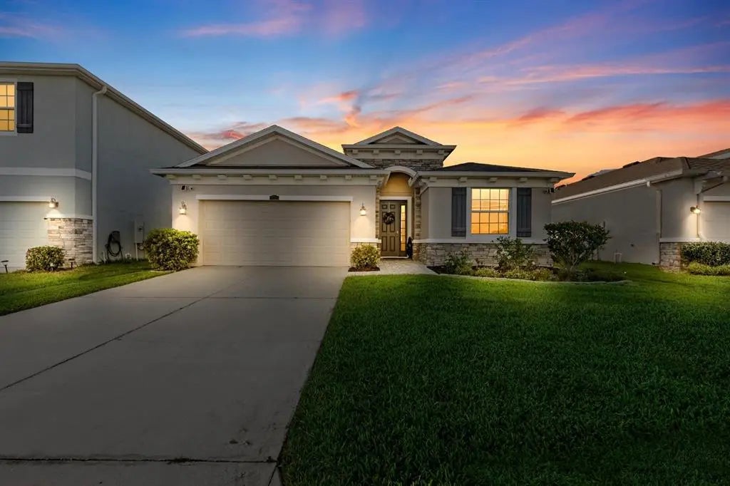 Step outside and relax on the SCREENED-IN patio with PAVERS that invites you to unwind and take in the SERENE POND VIEW that makes this home truly special. The .23-acre lot offers plenty of space for outdoor activities, with a paved walkway leading to the back of the house. The exterior features beautiful STONE accents, adding to the home’s curb appeal.