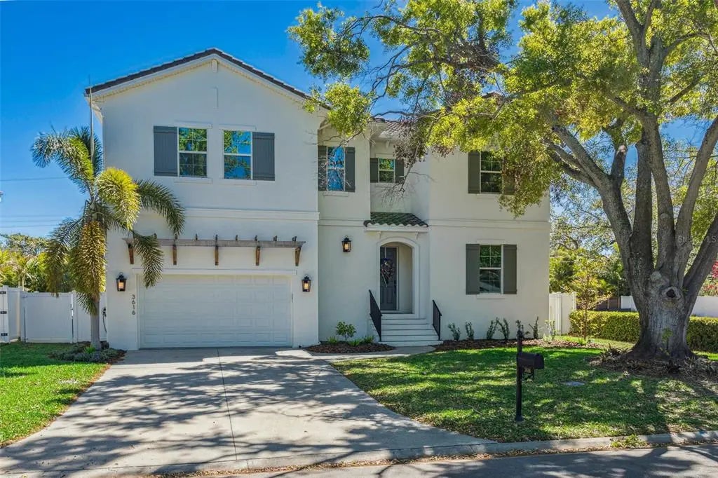 Discover the pinnacle of luxury living in Belmar Shores! This captivating 5-bedroom, 4-bathroom, nearly 3,500-square-foot masterpiece offers custom-crafted elegance, complete with an electric heated pool and spa. Situated on a quiet, established street within South Tampa's highly coveted Plant School District, this 2017-built gem provides a truly elevated lifestyle. Step inside to a thoughtfully designed open floor plan adorned with wood porcelain tile and enhanced by crown molding. The ground floor features a flexible bedroom suite—perfect for hosting guests or creating a private office. At the heart of the home lies a chef-inspired kitchen, seamlessly connected to an oversized family room and sunlit breakfast nook. Highlights include a spacious walk-in pantry, soft-close cabinetry, and exquisite Cambria quartz countertops. Retreat to the luxurious primary suite upstairs, boasting dual walk-in closets and an indulgent en-suite bath complete with a garden tub, separate shower, and dual vanities. Three additional spacious bedrooms and a convenient upstairs laundry room ensure comfort for the entire family. Outside, an entertainer's dream awaits. Your personal backyard sanctuary includes an electric heated pool, spa, and expansive travertine-adorned lanai. The fully equipped outdoor kitchen and enchanting landscape lighting set the stage for unforgettable gatherings or quiet relaxation. Additional features include an oversized two-car garage and Cased Impact Windows throughout. Modern upgrades, such as dual AC units installed in 2020 with UV light and Reme Halo filtration, provide year-round comfort and impeccable air quality. Don't miss your chance to own this extraordinary property!