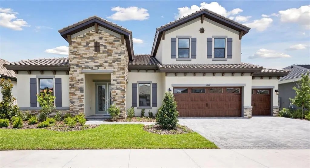 The Key Largo II presents an exceptional opportunity for immediate occupancy. This residence showcases a refined aesthetic, featuring Sonoma Painted Linen cabinetry, elegant Frost Whte MSI Quartz countertops, and durable Pride Plus LVP flooring throughout. This Key Largo II is meticulously designed to optimize comfort and practicality. As you step inside, the open plan immediately captivates, highlighted by impressive 12-foot ceilings that stretch across the foyer, formal dining room, grand room, and kitchen. The luxurious downstairs owner's retreat provides a private sanctuary, featuring a double-door entry, two expansive walk-in closets, a dedicated dressing area, and a generous en-suite bath. Additionally, this home boasts well-proportioned secondary bedrooms, an upstairs bonus room perfect for versatile living, an oversized laundry and hobby room, and ample outdoor living space with a covered lanai. Every detail has been thoughtfully considered to support a comfortable and comprehensive lifestyle.