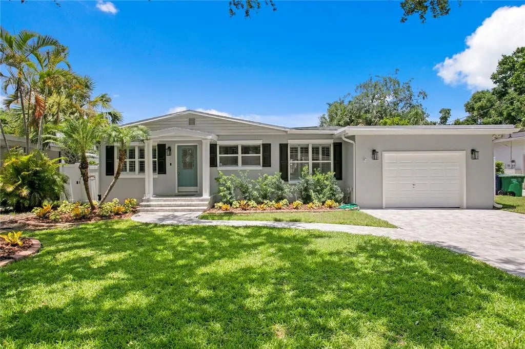 Welcome to this beautifully updated one-story pool home (that was unaffected by past hurricane flooding) nestled on a peaceful street in Beach Park - one of South Tampa’s most sought-after neighborhoods. Inside, the light filled living room flows into the updated kitchen showcasing white cabinetry, quartz countertops, and stainless-steel appliances. The dining room has banquette seating, perfect for casual dining and entertaining. The primary bedroom offers views of the lush backyard and a fully renovated bathroom, while the two guest rooms share a remodeled bathroom that includes a quartz topped built-in and tub with a bright modern design. Step into the inviting sun room which opens to a large salt-water pool surrounded by expansive pavers - perfect for grilling, dining, or lounging and soaking up the sun. A spacious, irrigated yard surrounded by tropical palms adds to the outdoor appeal. Recent renovations include; painting exterior of the home in 2025, and a new pool pump, water heater and dryer in 2024. An electric vehicle charger was added to the garage in 2024. Kitchen and bathrooms were completely remodeled in 2020, a custom paver driveway and front porch were added in 2020, brand new roof in 2019, new HVAC was installed in 2017. This neighborhood has A-rated schools (Plant/Coleman/Grady), is very close to many private schools, minutes to Tampa International Airport, and is walking distance to the grocery store, boutiques and many restaurants. Come and see this happy home for yourself!
