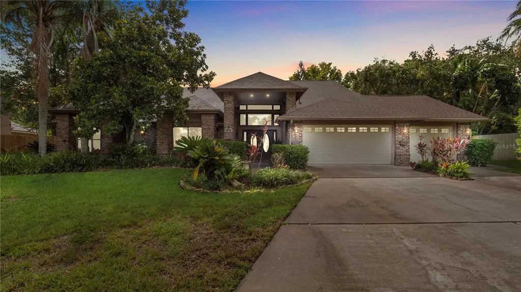 Nestled at the end of a serene cul-de-sac this exquisite 4-bedroom, 3-bath pool home on over 1.2 acres offers the perfect blend of privacy, elegance, and resort-style living. The stately brick façade, mature landscaping, and oversized three-car garage immediately impress upon arrival. Step inside to discover a thoughtfully designed open floor plan with soaring ceilings, abundant natural light, and spacious living areas ideal for both entertaining and everyday comfort. The heart of the home is the chef’s kitchen, featuring rich wood cabinetry, stainless steel appliances, granite countertops, a breakfast bar, and an adjacent informal dining space that seamlessly connects to the main living room with a cozy fireplace and direct access to the screened-in lanai. Sliding glass doors fully retract to blend indoor and outdoor living, revealing a tropical oasis beyond. The expansive lanai boasts multiple seating areas, a fully screened saltwater pool and spa, and a covered patio equipped with ceiling fans and a built-in bar, perfect for relaxing or hosting unforgettable gatherings. Beyond the pool, enjoy your own backyard retreat with lush landscaping, a peaceful gazebo, and an expansive green space backing up to conservation for ultimate privacy and tranquility. The extremely large master suite layout is fantastic, effortlessly transitioning from the bed area to a dedicated sitting or exercise space, then on toward the double sink vanity, garden tub, private shower, water closet, and a huge walk-in closet. It’s a true retreat designed for comfort and functionality. Three additional bedrooms provide flexibility for guests, family, or a home office. Thoughtful upgrades throughout include recessed lighting, luxury vinyl plank and tile flooring, ample storage, and a well-appointed laundry room. Located in a tranquil neighborhood with large estate lots and no CDD fees, this home is just minutes from Tampa Premium Outlets, The Shops at Wiregrass, and dining hotspots like Noburu Sushi, Capital Tacos, and Datz. Nature lovers will appreciate nearby parks such as Starkey Wilderness Preserve and Lake Rogers Park. Top-rated schools, quick access to major highways, and proximity to Tampa International Airport, AdventHealth Wesley Chapel, and St. Joseph’s Hospital-North further enhance the appeal. Whether you’re seeking a private sanctuary or a space to entertain in style, 16115 Carden Drive offers a rare opportunity to own a home that embodies comfort, elegance, and Florida living at its finest.