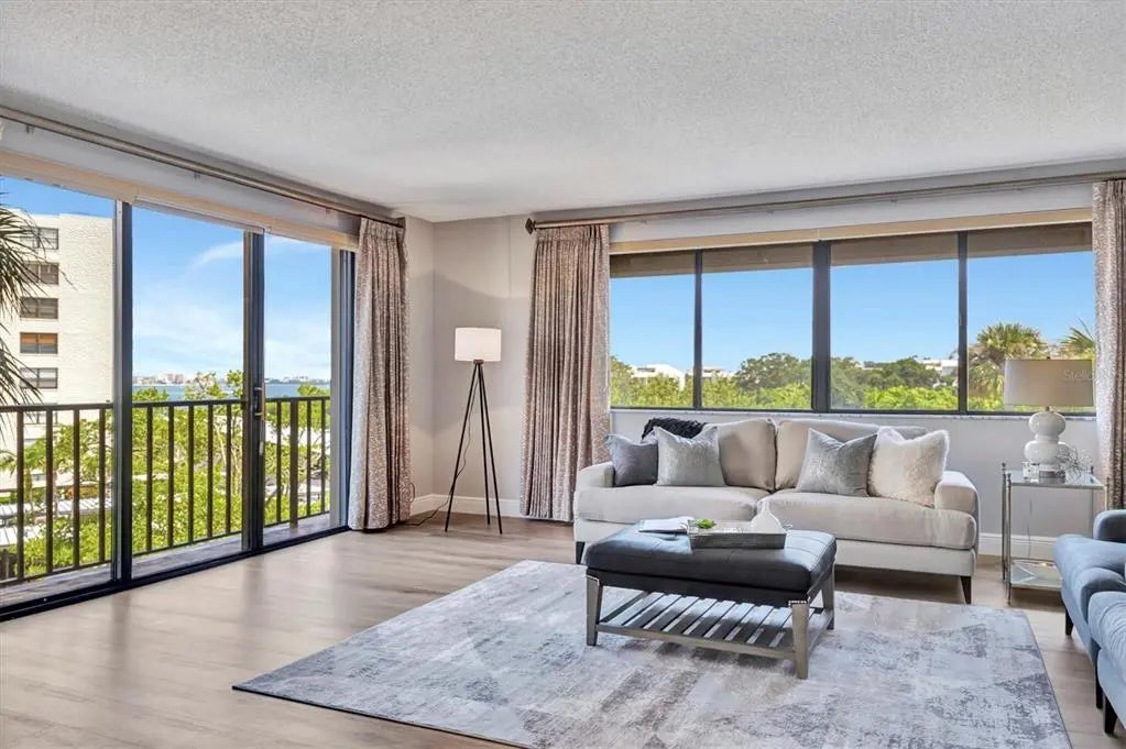 WOW! This updated condo overlooking the intracoastal is impressive! Also, you can bypass the BELLEAIR COUNTRY CLUB 5-year Golf Membership waiting list! Nestled within the highly sought-after 24-hour guard gated Belleair Country Club, this exceptional corner unit at The Oaks presents a rare opportunity for luxurious living in a coveted community. Boasting exclusive secure entry and a welcoming elevator foyer, this residence exudes sophistication from the moment you arrive. Step through the double front doors of the residence and be captivated by the new LVP flooring and the spaciousness of this 2-bedroom PLUS a Den, 2-bath condominium, offering an expansive 2050 square feet of living space. The thoughtfully laid-out floorplan ensures privacy and convenience for both residents and guests, while multiple balconies provide serene views of the picturesque grounds and Intracoastal waterway. At the heart of the home lies the kitchen, a culinary haven featuring Corian countertops, a convenient walk-in pantry and a large laundry closet (with a full-size washer & dryer). The family room is bathed in natural light, with a large picture window and sliding glass door offering breathtaking views of the Intracoastal and community pond. Meanwhile, the living room showcases plantation wood shutters adorning two sets of sliding glass doors, creating an elegant ambiance perfect for entertaining. Retreat to the primary bedroom, where ample closet space, access to the large balcony and an ensuite bathroom with new quartz countertops and a bathtub await, offers a sanctuary of relaxation. The generously sized secondary bedroom also has access to the balcony and is conveniently located across from a beautifully updated bathroom with a walk-in shower. Additional features include: freshly painted interior, and new fans/lighting through most of the condo. Storage abounds throughout the residence, ensuring ample space for all your belongings, with an under-building parking space, an oversized storage closet next to the parking space and an addition storage unit off the patio! Enhanced safety provided with hurricane shutters on all sliding glass doors and windows. Experience resort-style living every day at the private pool exclusive to The Oaks residents or take advantage of the sidewalks within the gated Belleair Country Club community. As an owner, you'll enjoy the added benefit of bypassing the 5-year golf membership waitlist, making this an unparalleled opportunity for you to enjoy the two 18-hole championship golf courses, tennis courts, pickleball courts, gym, spa, croquet, shuffleboard and fine dining options. Conveniently located within an easy drive to Tampa International Airport, award-winning Gulf beaches, and a plethora of shopping and dining options, this residence epitomizes the ultimate Florida lifestyle. Don't miss your chance to make every day feel like a vacation in this exquisite Belleair retreat.