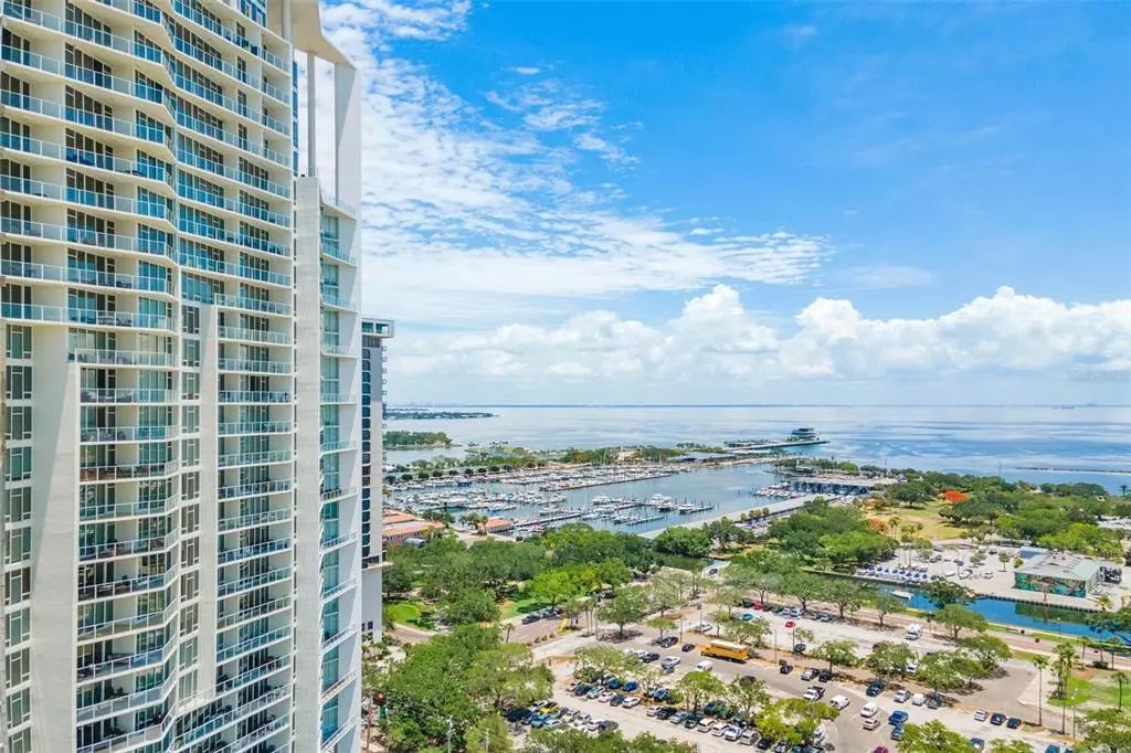 Elegance combined with water and city views – a perfect fusion of water views & walkable Downtown entertainment. Stylish & Contemporary renovations have already been completed to create the perfect Zen sanctuary to enhance relaxed living & enjoyment. This east-facing unit with water views showcases brilliant sunrises over the Bay along with views of Al Lang Stadium & Albert Whitted Airport for additional interest from your 9th floor vista. This very unique unit has tremendous added value with extensive updates throughout. The kitchen has been completely remodeled including all new designer cabinetry, new granite counters ,backsplashes and all brand new high-end appliances. The master bathroom has been also been completely renovated with a new shower, stand-alone, sleek soaking tub, new cabinetry, stone counter tops, sinks, fixtures… the works! You’ll appreciate the polished look of the newly tiled balcony, too. The master bedroom has an adjoining room which is perfect for a home office or additional sitting room. This unit has been freshly painted within the last 2 years. There are electric shades in living room/dining area and 2nd bedroom. The primary bedroom has light blocking shades. The newer, top of the line, oversized washer and dryer are also a big bonus! There are 2 designated parking spaces (158 & 159) in the secure parking garage. This unit also has a climate controlled storage cage (#171 on 3rd floor). Signature offers 24-hour concierge service, onsite management, two social rooms, state of the art fitness center, heated pool & spa, private cabanas & outdoor kitchen. Walk to a wide variety of restaurants, bars, cafés, museums, city events, parks and of course our fantastic waterfront to start enjoying your best downtown lifestyle.