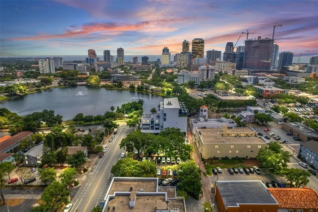 Welcome to The Mirror at Mirror Lake. This contemporary boutique building, completed in 2020, offers a unique urban lifestyle nestled between Downtown St. Pete and The EDGE District. With only 10 exclusive residences, this top-floor unit ensures privacy and sophistication in the heart of the city. This stunning residence (Unit 503) spans two levels and showcases a thoughtfully designed open floor plan. On the first level, you are greeted by an expansive living area with oversized windows that flood the space with natural light. The large kitchen features Whirlpool stainless steel appliances, quartz countertops, a colorful subway tile backsplash, and Kohler faucet fixtures. The dining area flows seamlessly just off the living room—perfect for entertaining. A stylish half bath is conveniently located on this level, along with access to a massive 22' x 22' outdoor terrace. The terrace, featuring turf and offering breathtaking views of the downtown skyline, is an ideal space for relaxing or hosting gatherings. Ascend the architecturally mindful staircase to the second level, where you will find two generously sized bedrooms, each with its own en-suite bathroom, providing comfort and privacy. The upper level also includes a dedicated laundry room for added convenience. This residence features high ceilings, elegant wood and tile flooring throughout, LED lighting, and hurricane-rated impact glass windows and sliders. Residents of The Mirror benefit from secure FOB entry and elevator access, with one assigned parking space. The location offers the best of St. Petersburg living, with walking distance to popular restaurants, breweries, boutiques, museums, parks, beaches, and easy access to airports. Don't miss your chance to experience this top-floor, two-level oasis with unmatched views and prime proximity to all that Downtown St. Petersburg has to offer. Call today to schedule a showing!