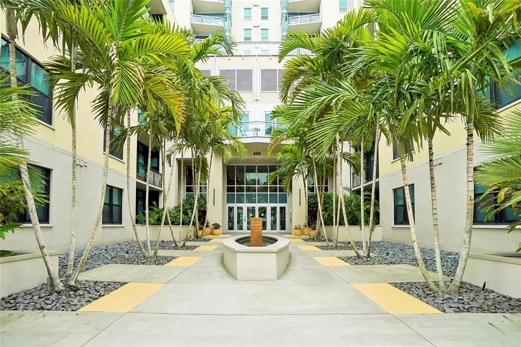 Introducing this exquisite 2 bedroom, 2 bath condo nestled in the heart of downtown St Petersburg within the sleek Sage building. Boasting a contemporary design, this home epitomizes modern sophistication with its recently updated kitchen featuring stunning quartz counters cascading on a sprawling island, complemented by custom wood cabinets. The kitchen also offers a large pantry, extra seating with storage, and high-end finishes like a fabulous backsplash and hardware. With 10 ft. ceilings and hardwood flooring throughout the main areas, the living space extends to a private balcony offering glimpses of Tampa Bay and beautiful panoramic city views. The split bedroom layout ensures privacy, with the main en-suite featuring a spacious walk-in closet with a custom closet system (all closets have custom systems) and a lavish primary bath showcasing a tiled walk-in shower, a luxurious soaking tub, and dual sinks. In addition to the generously sized second bedroom, the main bath features a tub/shower with quartz accents in a modern aesthetic. St Petersburg ranks high in the walkability and bikeability throughout Florida The property's prime location provides convenient access to a plethora of amenities, including nearby restaurants, museums, galleries, parks, The Pier, and shops like Publix. Residents can indulge in the vibrant community offerings, such as the Saturday Morning Market for unique finds and fresh produce. "The Sage" enriches the living experience with a range of facilities, including an on-duty concierge in the evenings, valet dry cleaning service, a rooftop heated pool, outdoor kitchens, a social area with media and clubroom, and a fully-equipped fitness center. Enjoy an urban oasis lifestyle with a coastal Florida flair. Don't miss out on the opportunity to make this your new home—schedule your private viewing today!