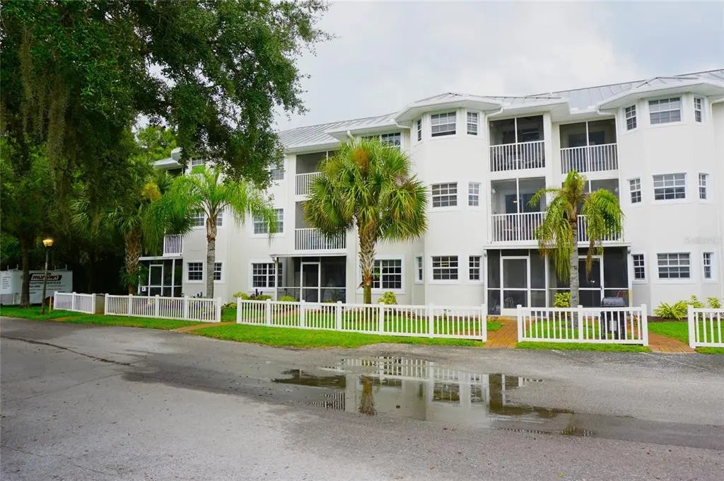 Furnished ground level condo in the Fountains/Paradise Lakes. This lovely unit has an open floorplan with tile/wood laminate flooring throughout. The spacious kitchen features plenty of cabinets and counter space, pantry storage, refrigerator (2018), built-in microwave (2023), 4-burner range (2023), dishwasher (2022), disposal (2022), bay window, and breakfast bar. Living room has comfy furnishings including sleeper sofa for guests, 55" Smart TV, and custom textured wall. The floorplan includes a dedicated dining space with view of the common area and pickleball courts. Primary bedroom has king bed, walk-in closet, custom textured wall, 55" Smart TV, and sliding doors to the covered/screened/tiled walk-out patio. The bath has a dual-sink raised vanity and tile-surround walk-in shower with glass block accent. Indoor laundry room with full-size washer (2024), dryer (2021) and lockable storage closet. AC is dated 2022. Water heater replaced in 2020. One assigned covered parking space conveys with the unit. Buyer is responsible for verifying all information and dimensions. Optional membership to Paradise Lakes Resort is not included in monthly condo association fee.