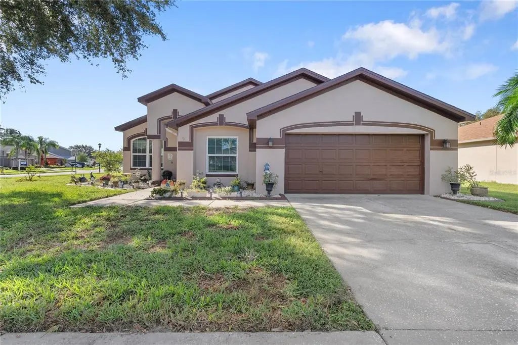Stunning 4-Bedroom Pool Home with High-End Upgrades on Oversized Corner Lot has been reduced to $30k below market value. You can move into this wonderful home and have instant equity. That is a rare and wonderful thing in this market. Discover this beautiful 4-bedroom, 2-bathroom pool home featuring a two-car garage and a range of premium upgrades. The newly remodeled kitchen and updated bathrooms elevate the interior, while key systems have been replaced for peace of mind. The A/C unit was replaced in 2018, and in 2019, New South Hurricane-rated, energy-efficient windows were installed. The roof, updated with dimensional shingles in 2022, and a new water heater (2024) assuring all major components are up-to-date. This spacious home offers a large lanai overlooking a heated, self-cleaning saltwater pool complete with a stunning waterfall feature. The home sits on an oversized lot with mature fruit trees and serene views of the lake and conservation area, perfect for enjoying the outdoors. The property includes raised garden beds, providing a tranquil setting for gardening enthusiasts. With both pool and landscape lighting, you can enjoy the outdoor beauty at night while relaxing to the sounds from the family room surround sound system. For added security, this home includes a built-in home security system. The neighborhood offers a playground and low HOA fees ($450/year). Conveniently located just 10 minutes from the Suncoast Expressway, this home combines luxury, security, and convenience.