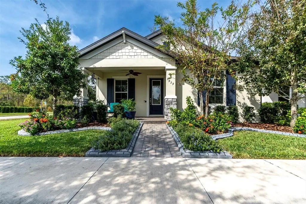 Welcome to this immaculately maintained home in the award-winning community of Starkey Ranch! This beautiful 3-bedroom, 2-bathroom plus office/den craftsman MI Avalon home sits on an oversized corner lot, blending sophistication, comfort, and nature-inspired tranquility. The home’s impressive curb appeal shines - adorned with stone accents on the front, custom landscaping, pavers, decorative concrete landscape edging, and permanent holiday trim lighting along the roofline for year-round ambiance. The charming front porch, complete with a cozy swing, invites you in, but it’s the rear screened lanai where the beauty of nature unfolds. Step out back to breathtaking, unspoiled conservation views and spectacular sunsets—a private paradise for morning coffee or evening gatherings. Inside, the seamless layout exudes warmth with rich, wood-look tile throughout the main living areas, offering elegance and minimal maintenance. The foyer opens to a versatile office/den on your left behind double French doors, ideal for work or relaxation, while on your right, two generously sized and spacious bedrooms, each with plush carpet, custom closets, and ceiling fans, are filled with natural light. A beautifully appointed full bath with upgraded finishes, framed mirror, and Cambria Quartz countertops serve these rooms with sophistication and style. The heart of the home is the open-concept main living area, designed for effortless entertaining and relaxation. The gourmet kitchen stands out with its abundance of linen shaker cabinets, under cabinet lighting, designer backsplash, stainless steel appliances, and stunning Cambria Quartz countertops. An oversized island, illuminated by stylish pendant lights, invites casual dining or intimate gatherings, while a custom frosted-glass pantry door, disposal push button on the counter, and reverse osmosis system add a thoughtful touch. The dining area is framed by a chic chandelier, flowing into a bright and welcoming great room, complete with a tray ceiling and 8’ sliding doors dressed in custom plantation shutters that lead out to the back lanai. The secluded Owner’s Suite offers a peaceful retreat with large windows that allow ample sunlight to flow in and a designer ceiling fan, evoking a sense of refined relaxation. The ensuite bathroom boasts dual sinks, a framed mirror, Cambria Quartz countertops, an oversized walk-in shower, wall-mounted vanity, and a custom walk-in closet with built-in shelving for added luxury and convenience. Additional features include a rear-facing two-car garage accessed via a quiet back alley entrance, upgraded cabinetry in the laundry room with Cambria Quartz counters, a gas water heater, water softener, added 220-volt outlet in the garage, garage ceiling storage racks, energy-efficient LED lighting, hurricane shutters, reclaimed water irrigation, and low homeowner's insurance. No flood insurance required—this home is as practical as it is stunning. Starkey Ranch offers a lifestyle that is second to none with top-rated K-8 schools, a community library, 3 community pools, playgrounds, dog parks, a theater, tennis courts, and 22 miles of scenic trails. Close to airports, world-class shopping, and dining! Don’t miss this chance to live in one of Tampa Bay’s most sought-after communities—schedule your private showing today and experience the unmatched allure of this Starkey Ranch retreat! Copy and paste for virtual tour: https://bit.ly/3939NightStar