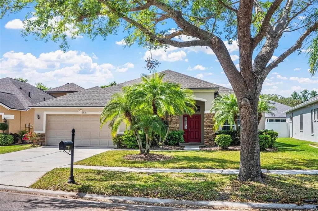 Wonderful opportunity to own this beautiful and move in ready 4BD/2BA/2 Car garage home in the established and sought after Estates at Bloomingdale Community. The home has new wood floors and the Roof was installed in 2023 and the A/C is newer as well. This well-kept home has formal living and dining rooms and the rear lania was converted into addition living space. Split bedroom, open floor plan, volume ceilings, and an inside utility room with washer and dryer. The kitchen offers 42 " cabinets, double sink, breakfast bar, and an additional eat in area. The Master Bath boasts dual sinks, a garden tub, and separate shower stall. The back yard in fully fenced in. Just a short distance to our amazing Florida beaches & theme parks. Easy commute access to I4, I75, & The Crosstown Expressway.