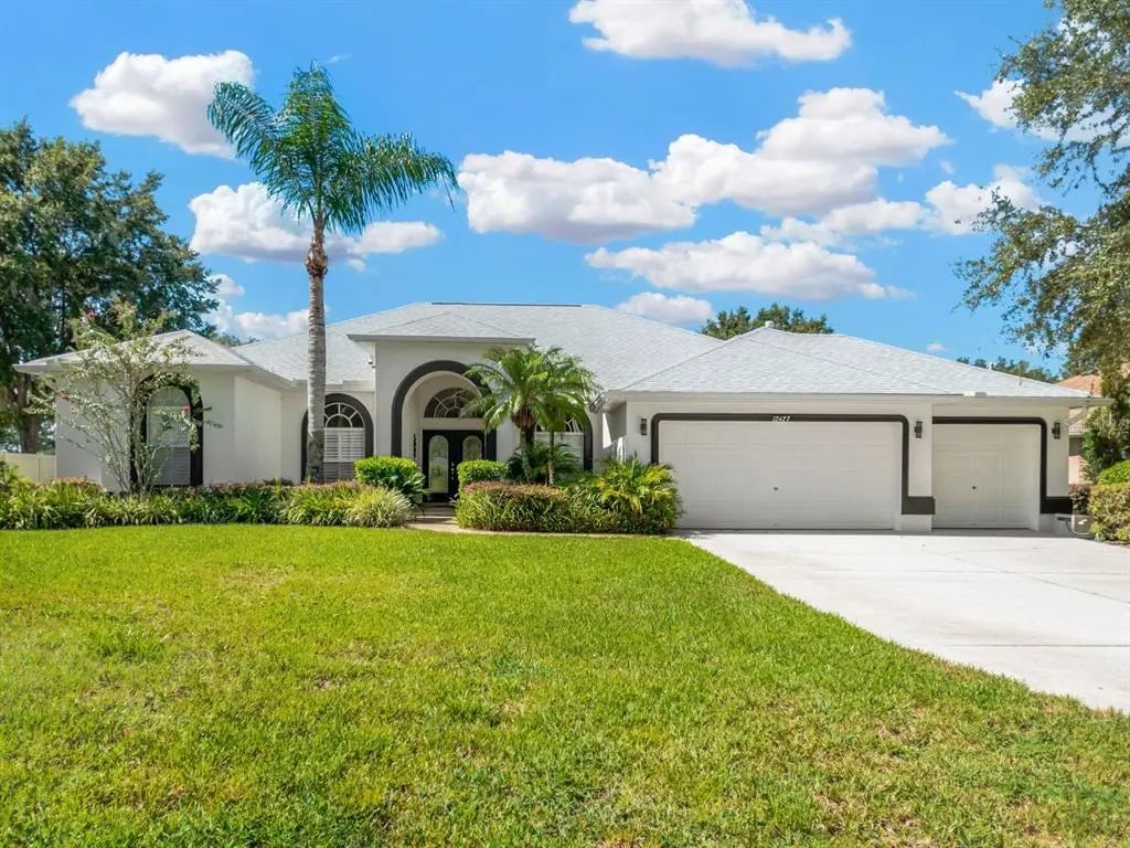 The kitchen is truly the heart of the home, featuring granite countertops, 42-inch cabinets, stainless steel appliances, breakfast bar, a large double-door pantry, a reverse osmosis system under the sink, and a built-in desk area to keep you organized, ideal for family gatherings and effortless entertaining. The family room is a bright and inviting space, anchored by an entertainment area with built-in shelving that offers both function and style. Above, four large trapezoid-shaped transom windows follow the cathedral ceiling line, drawing the eye upward and flooding the room with natural light. These striking architectural windows not only enhance the sense of space but also add a dramatic touch, making this the perfect gathering spot for relaxing, entertaining, or enjoying movie nights in a beautifully lit setting.