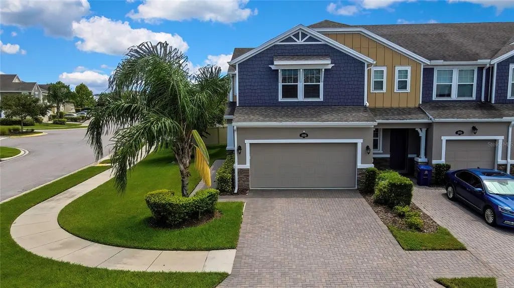 NEW $14K LENNOX A/C (2025), WATER HEATER (2025), DISPOSAL (2025), WATER SOFTENER, EPOXY-COATED GARAGE FLOORING (2024), DISHWASHER (2024), HOOD VENT (2023), and MICROWAVE. Located in the community of Long Lake Ranch—renowned for its scenic views and surrounded by conservation and wetlands—this two-story townhome offers resort-style living with the ease of a low-maintenance lifestyle. Built in 2018 by Beazer Homes, it encompasses 2,098 sq. ft. with 4 bedrooms, 3 full baths, and a 2-car garage, positioned as an end unit. Curb appeal shines with a stone-accented exterior, paver driveway, and Ring doorbell. Inside, the first floor welcomes you with ceramic tile wood-look flooring, Plantation shutters, and an open-concept design. The kitchen impresses with crown-topped cabinetry, Quartz counters, a herringbone-pattern glass tile backsplash, a suite of stainless appliances, and a center island breakfast bar with pendant lighting. A first-floor bedroom with an adjacent full bath adds flexibility, serving equally well as a private guest retreat or a convenient home office. Upstairs, the expansive primary suite features dual closets and an ensuite bath complete with a double vanity, makeup station, garden tub, separate shower, and private water closet. For added convenience, it shares direct access to the laundry room—equipped with washer, dryer, and cabinetry—which is also accessible from the hallway. Two additional bedrooms and a full bath complete the second floor. Outdoor living is a delight with a screened lanai and an additional open patio perfect for relaxing or ideal for barbecues. The HOA covers the roof (2018) and with HOA approval, a fence may be extended along the side of the home for additional privacy. As a resident, HOA dues include exterior maintenance, landscaping, water, sewer, and trash allowing you to embrace a hassle-free lifestyle. Zoned for the highly sought-after Skybrooke K–8, which opened in August 2025, families will appreciate the convenience of this brand-new school serving Kindergarten through 8th grade. Skybrooke features exciting academic focus areas such as Aerospace/Robotics, Computer Science, and Medical Skills, as well as traditional middle school sports including volleyball, cheerleading, soccer, football, basketball, track, and field.
